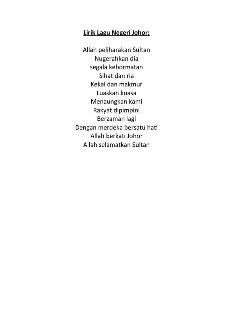 Negaraku Dan Bangsa Johor Lirik Lagu Pdf
